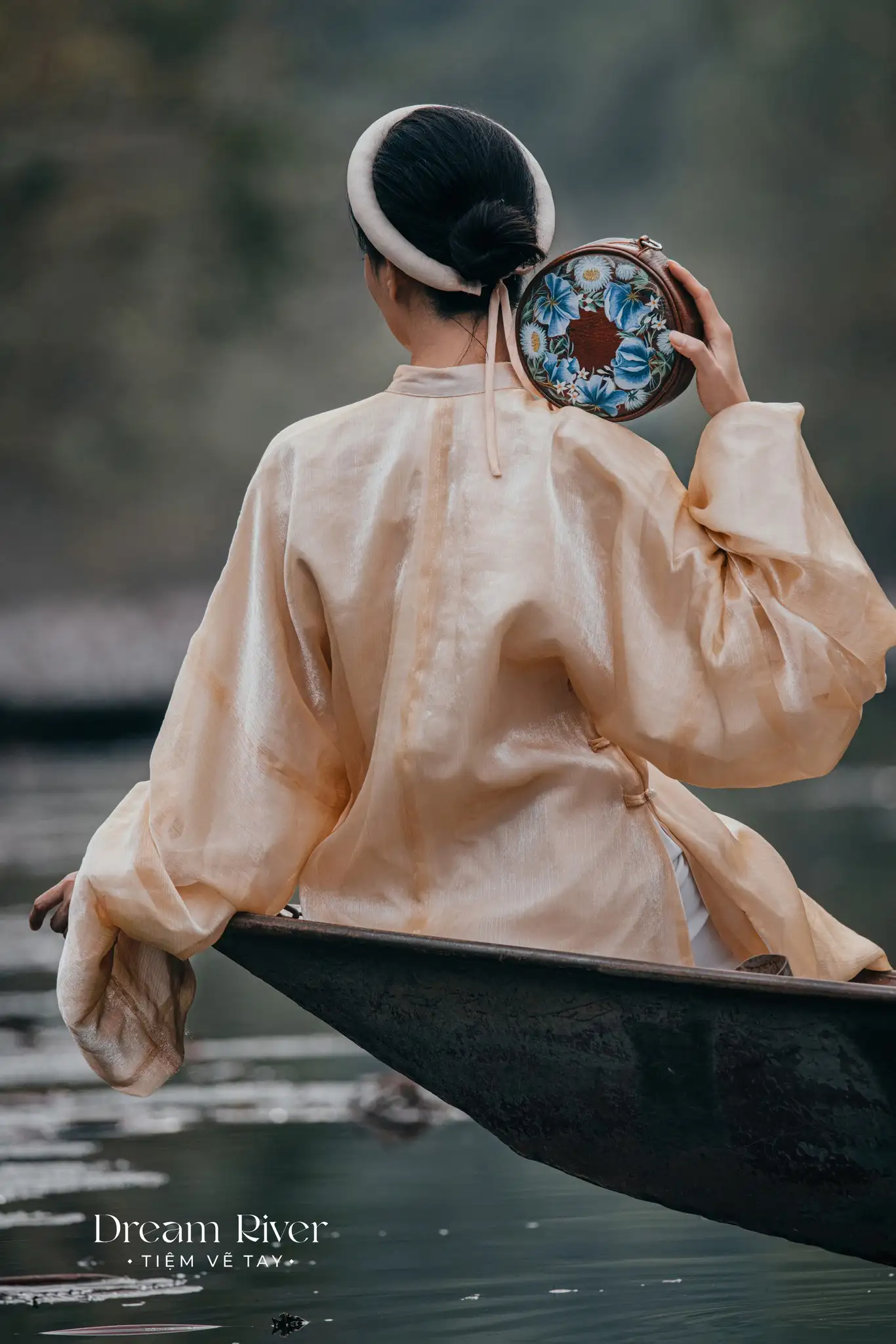 – Áo Tấc vải tơ xước kim màu vàng lót trắng