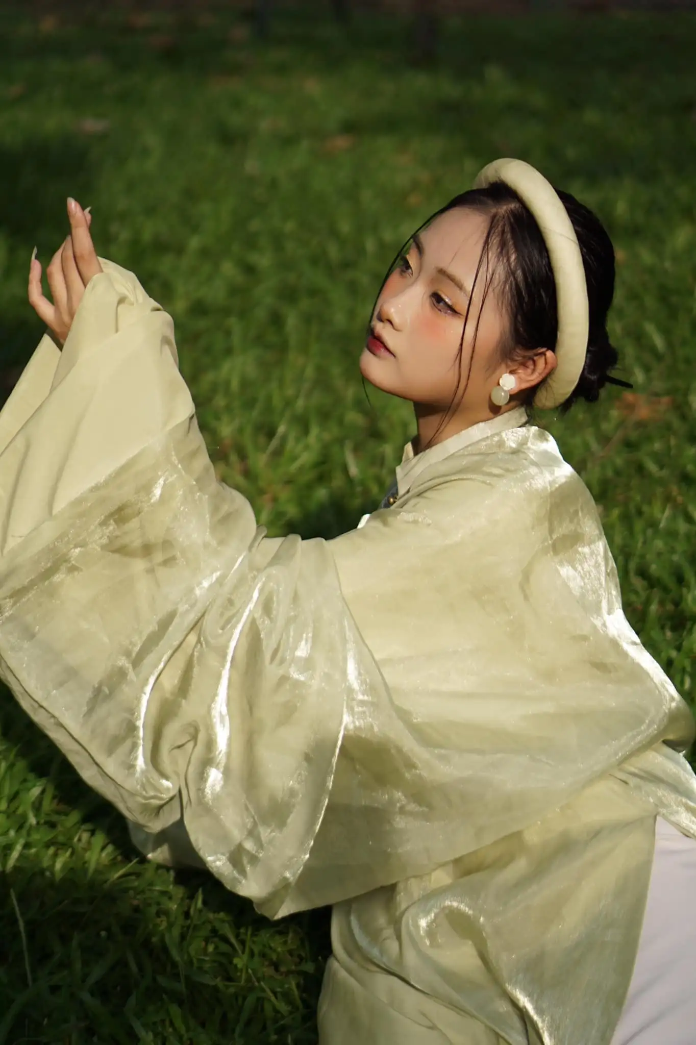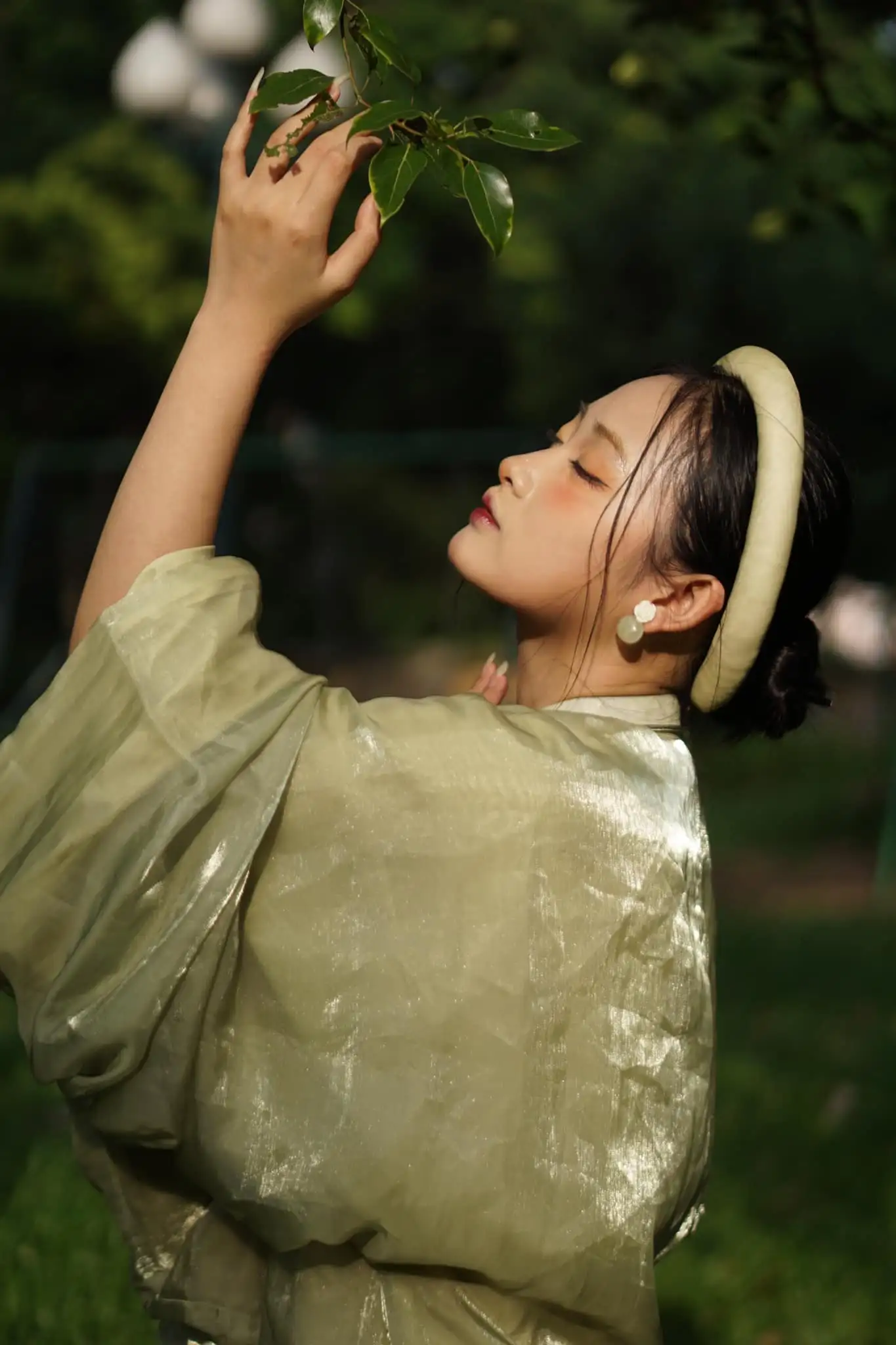 – Áo Tấc vải tơ óng màu xanh cốm lót xanh nhẹ nhàng nữ tính