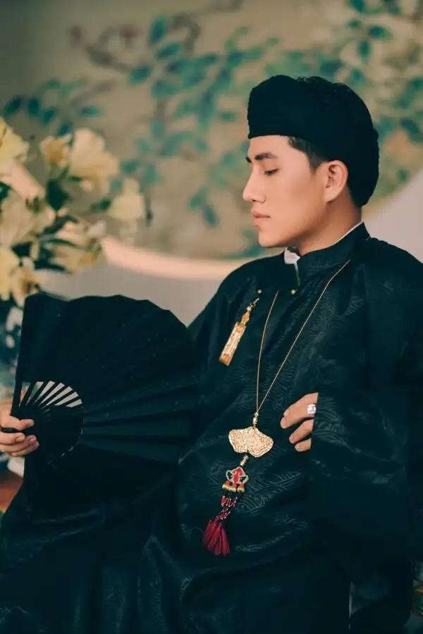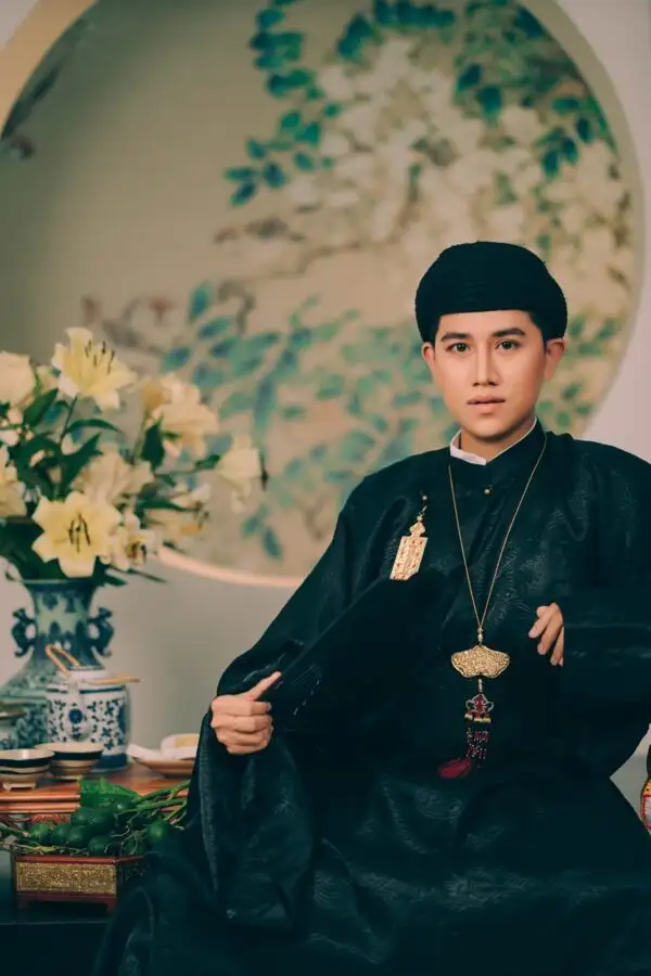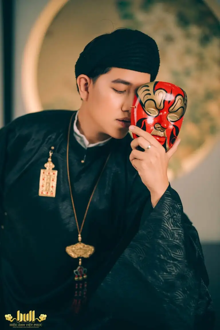 Mã sản phẩm: A18: Fullset áo Tấc tơ vân thủy ngư đen lót đen