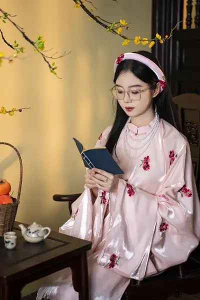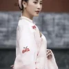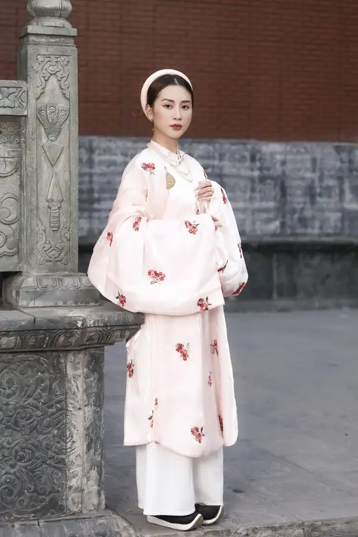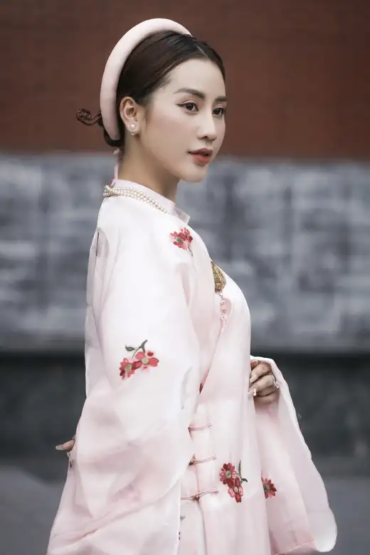 – Áo Tấc vải tơ kim màu hồng pastel thêu hoa, rất sang trọng, và có điểm nhấn