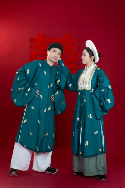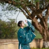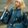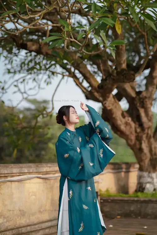 – Áo Tấc vải tơ xanh cổ vịt thêu hoa lá, sang trọng, dịu dàng, dùng được cả cho nam hoặc nữ