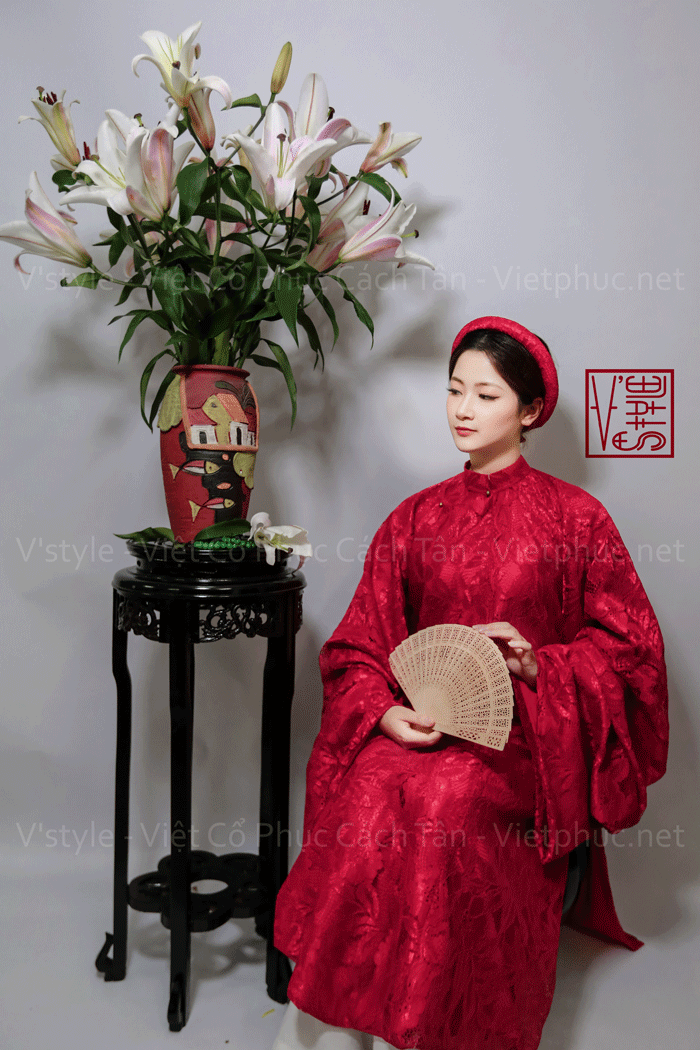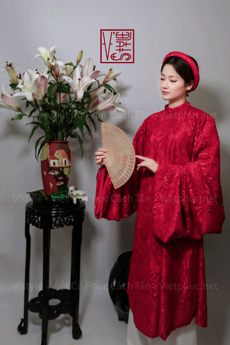 – Áo Tấc vải ren hoa màu đỏ lót đỏ