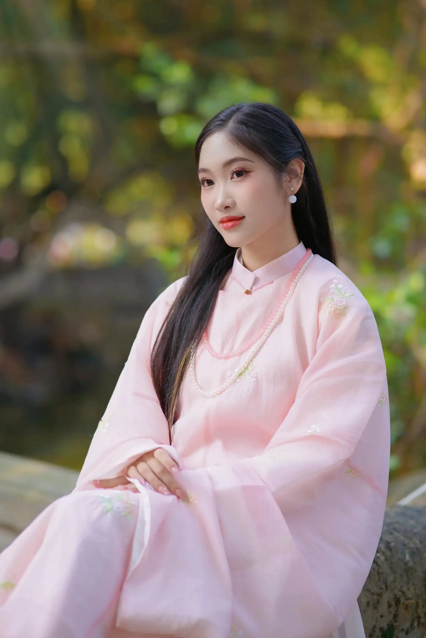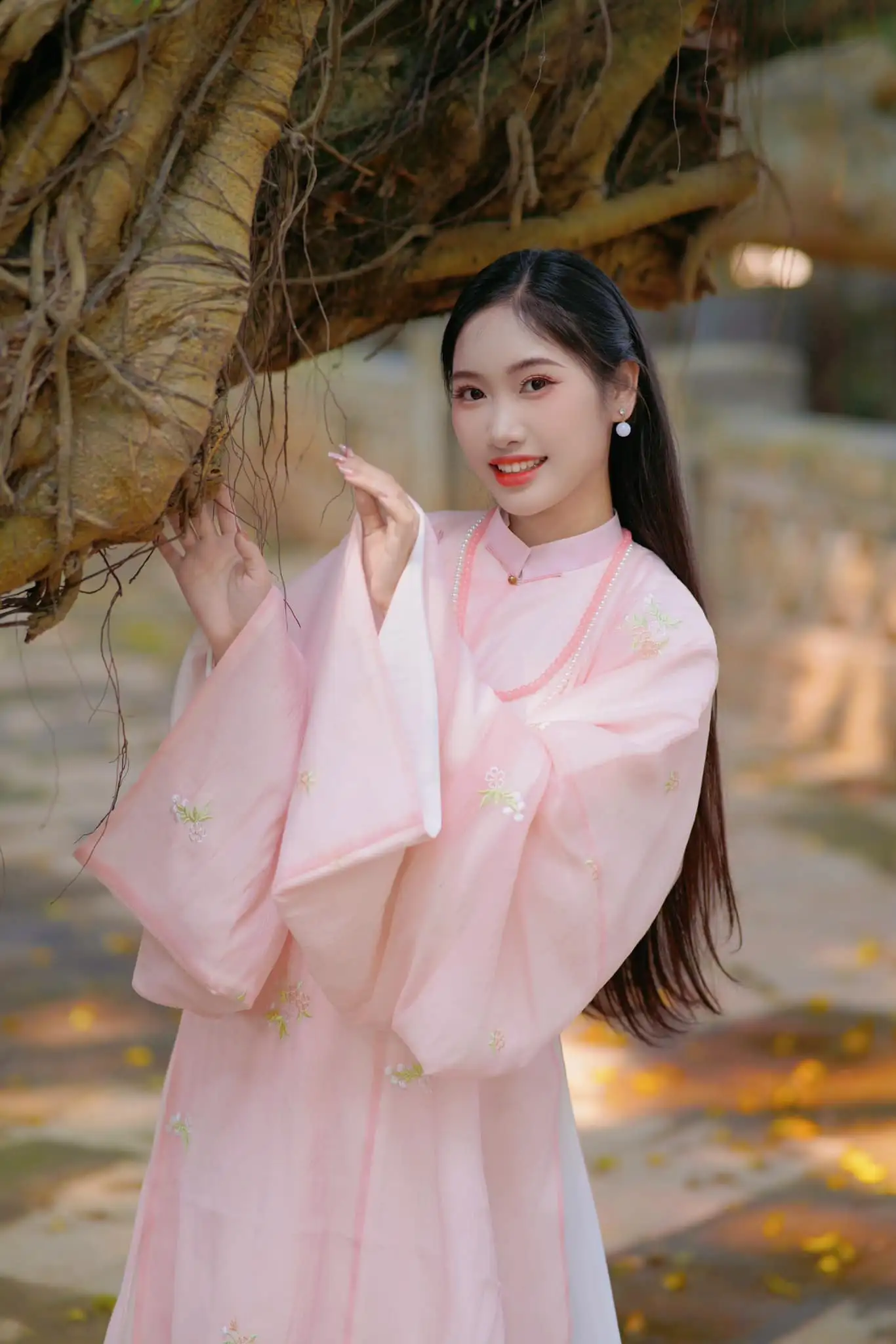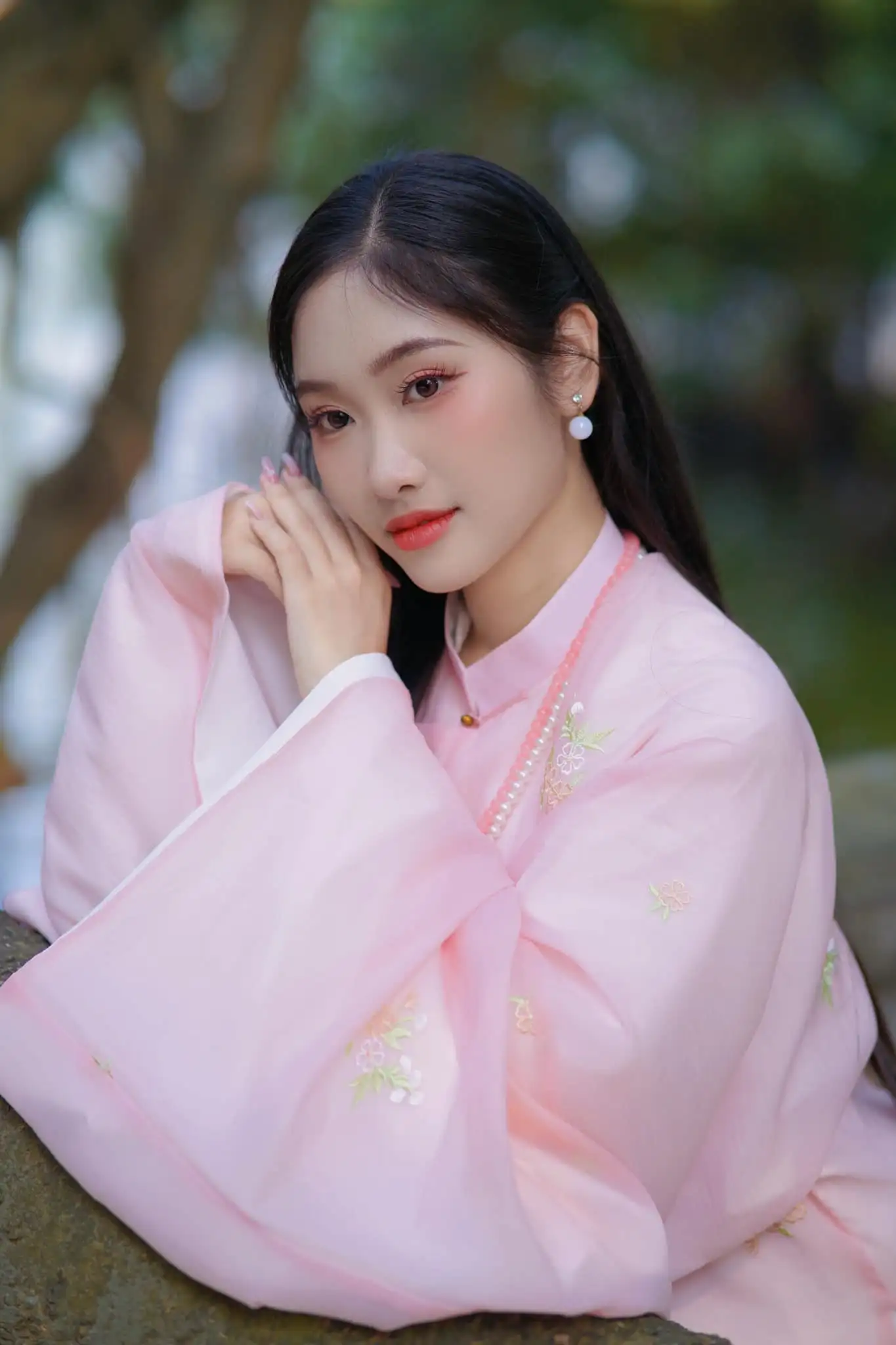– Áo Tấc vải tơ màu hồng lót trắng, thêu hoa, sang trọng, dịu dàng