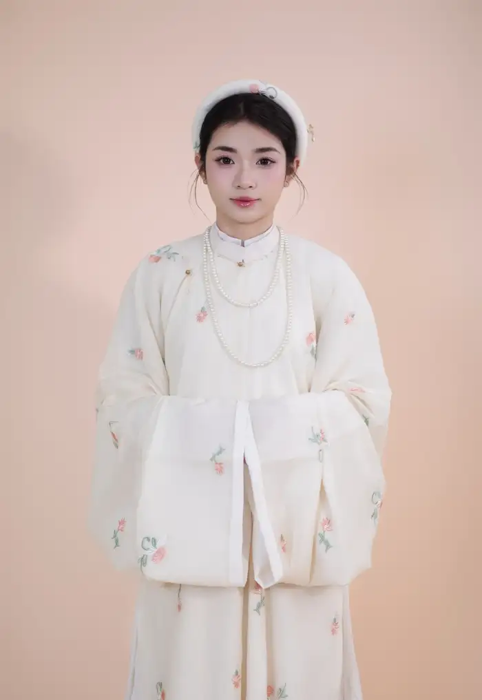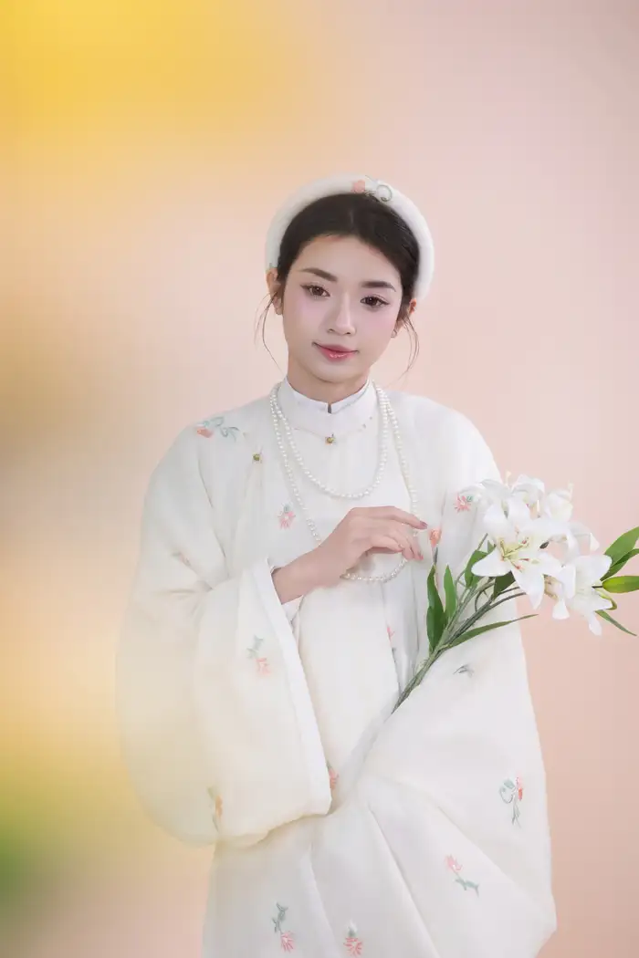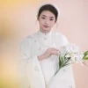 – Áo Tấc vải tơ màu be thêu hoa nhí, sang trọng, dịu dàng