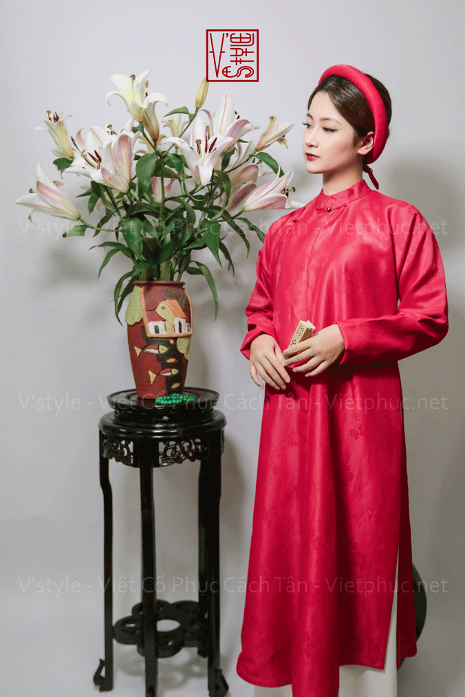 – Áo Ngũ thân tay chẽn vải sa hàn đỏ lót đỏ