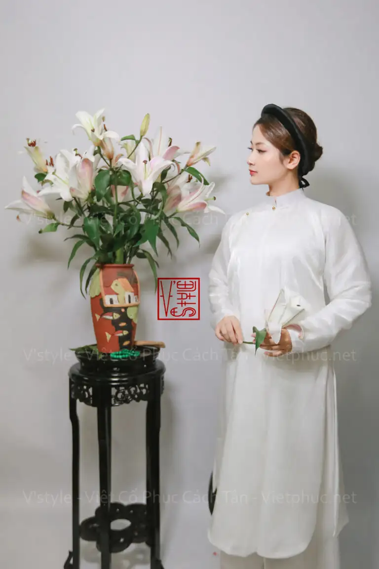 – Áo Ngũ thân tay chẽn vải xước kim trắng lót trắng