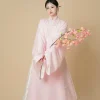 – Áo Giao Lĩnh dáng dài vải tơ hoa cúc hồng lót trắng