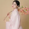 C8: Giao Lĩnh Tơ Hoa Cúc Hồng Lót Trắng, Thường Trắng, Khoác Đối Khâm Tơ Óng Trắng