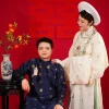 – Áo Tay chẽn vải dệt hoa văn bát bửu màu xanh than, có 3 sz: 1 sz nam, 1 sz nữ, 1 bigsize