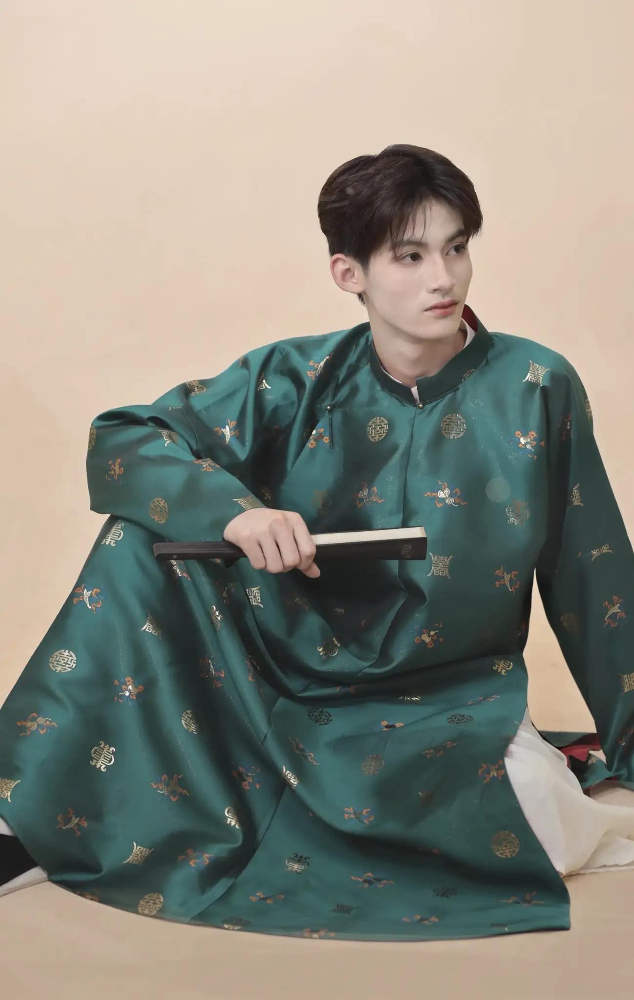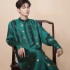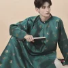 – Áo Tay chẽn vải dệt hoa văn bát bửu màu xanh cổ vịt