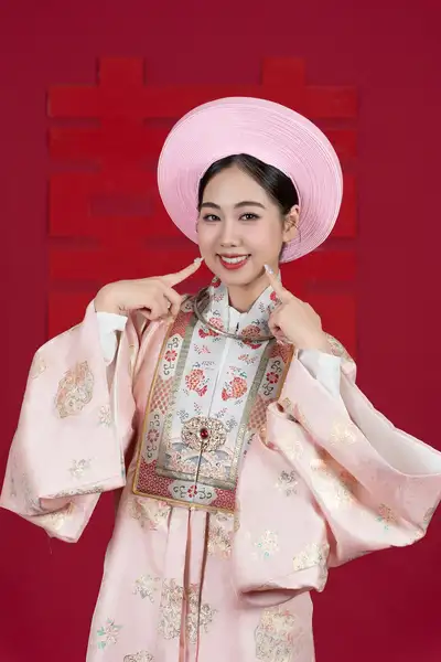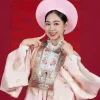 – Áo Nhật bình vải dệt Thỏ Ngọc hồng – cổ dệt lý ngư với hoa văn xịn xò, concept đặc biệt, trên chất vải sang trọng