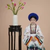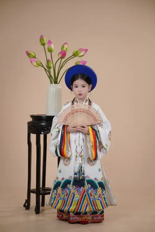 – Áo Nhật Bình trẻ em màu trắng vải gấm in hoa văn chìm