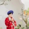 – Áo Nhật Bình màu đỏ vải gấm in hoa văn chìm