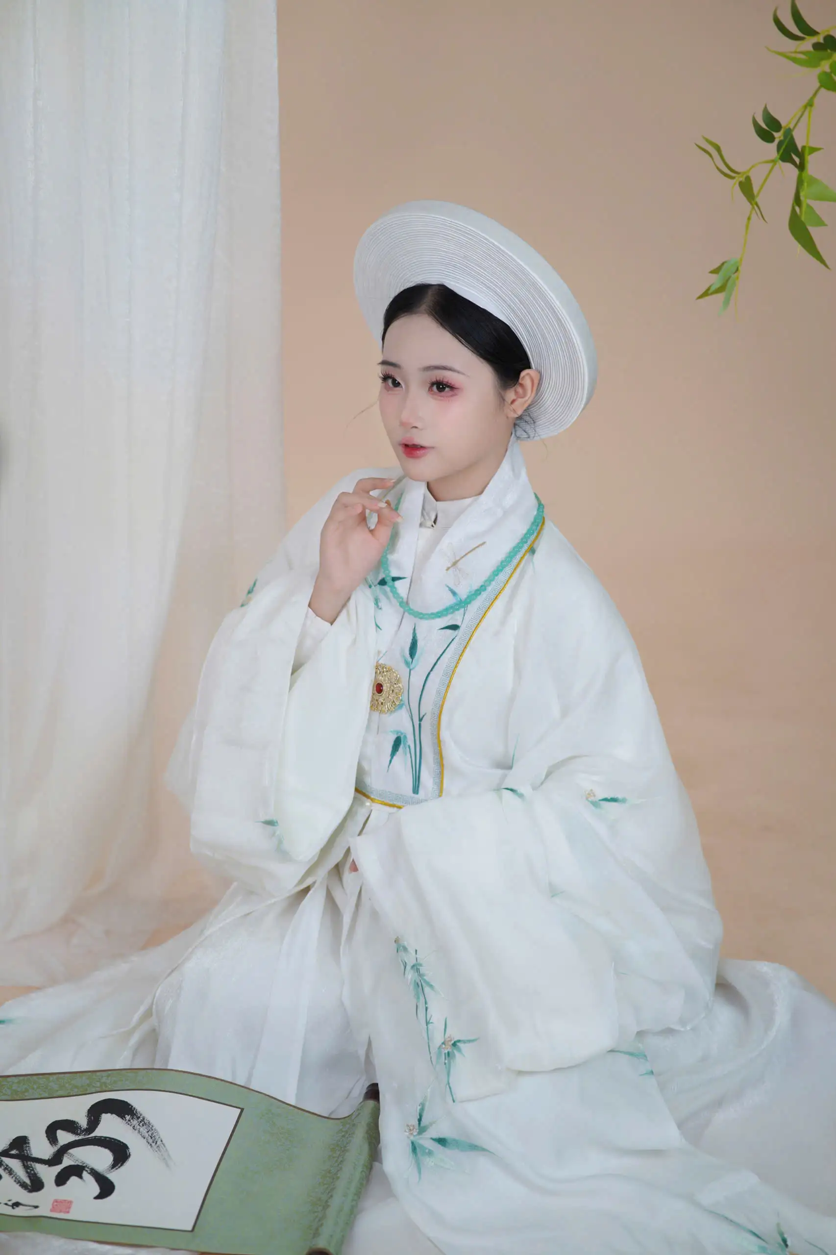 – Fullset Nhật Bình tơ xước kim trắng thêu hoa trúc kèm thường (váy quây) cho nữ với hoa văn thiết kế độc quyền, concept đặc biệt, trên chất vải tơ thêu hoa sang trọng